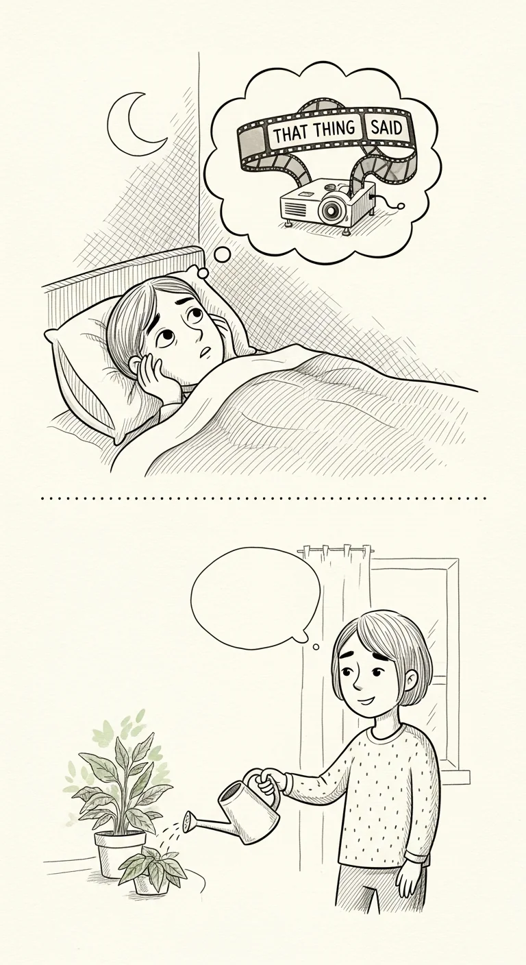 That awkward thing you said two days ago that you've replayed forty-seven times? They forgot it before they left the room. You are the only one still running that tape.