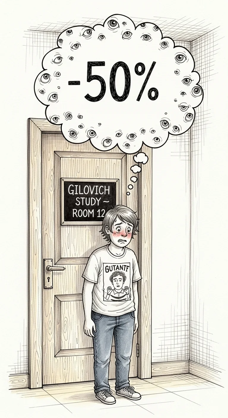 Cornell psychologist Thomas Gilovich ran a study. He asked students to wear an embarrassing T-shirt into a crowded room full of their peers. Before entering, they predicted: how many people will notice?