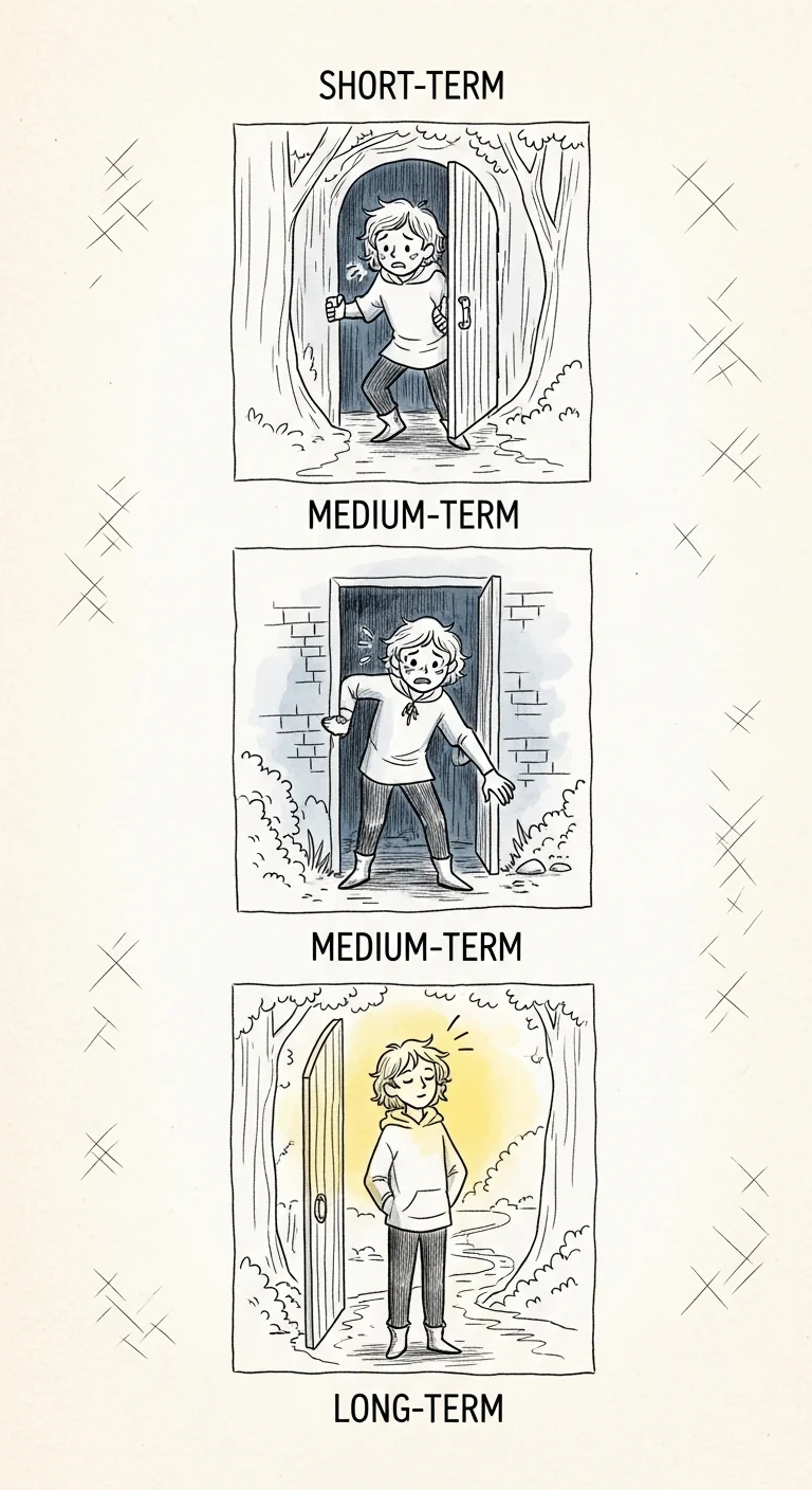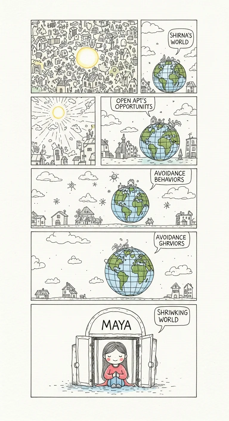 Maya's story: She felt anxious at a networking event, so she left early for immediate relief. But next event? Worse anxiety. She avoided again. And again. Six months later, even thinking about networking triggered panic. Her world—and her opportunities—had shrunk dramatically.