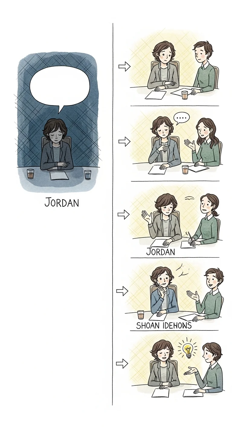 Jordan's story: He stayed silent in meetings to avoid judgment. But silence meant his ideas never got heard, his capabilities went unnoticed, and his career stalled. When he finally used graduated exposure (started small: one comment per meeting), something shifted.