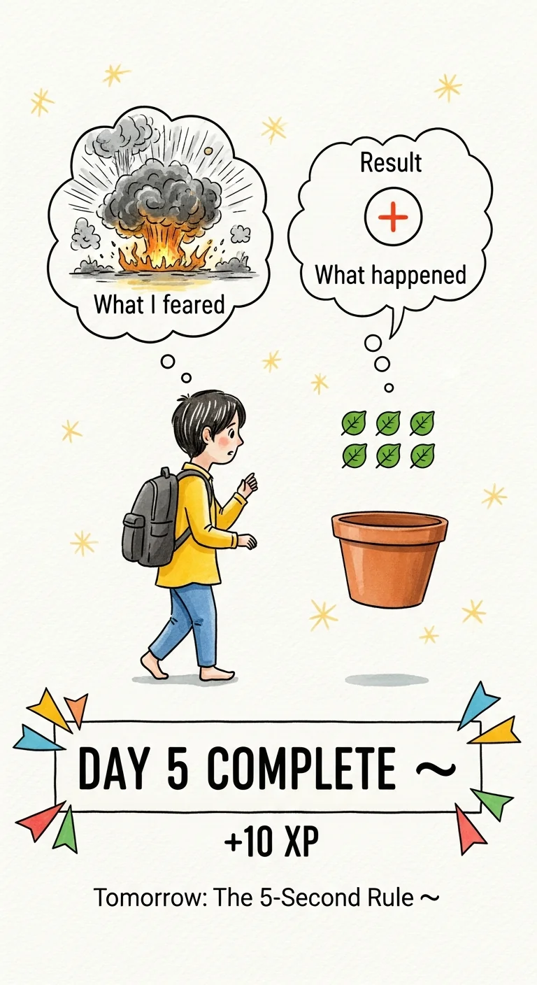 Your challenge today: Identify ONE social situation you'd normally avoid or cut short. Instead of avoiding, stay 5 minutes longer than usual OR engage one degree more (ask a question instead of staying silent). Afterward, note what you feared vs. what actually happened. This evidence rebuilds confidence.