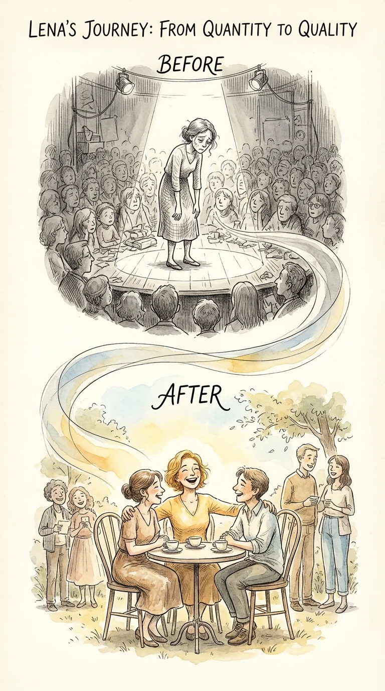 Character story: Lena's transformation. Lena spent years curating perfect image: always upbeat, never needy, endlessly interesting. Result: Lots of acquaintances, deep loneliness. Nobody knew real her. The shift: Started being more real. Admitted struggles. Shared genuine interests. Asked for help. Stopped performing. Result: Fewer friends, but REAL friends. People who knew actual self and loved her anyway. Her insight: 'I was so afraid of being too much or not enough that I was just... nothing. Being real is scarier but so much better.' This is the confidence that actually lasts—confidence based on being known and loved for yourself.