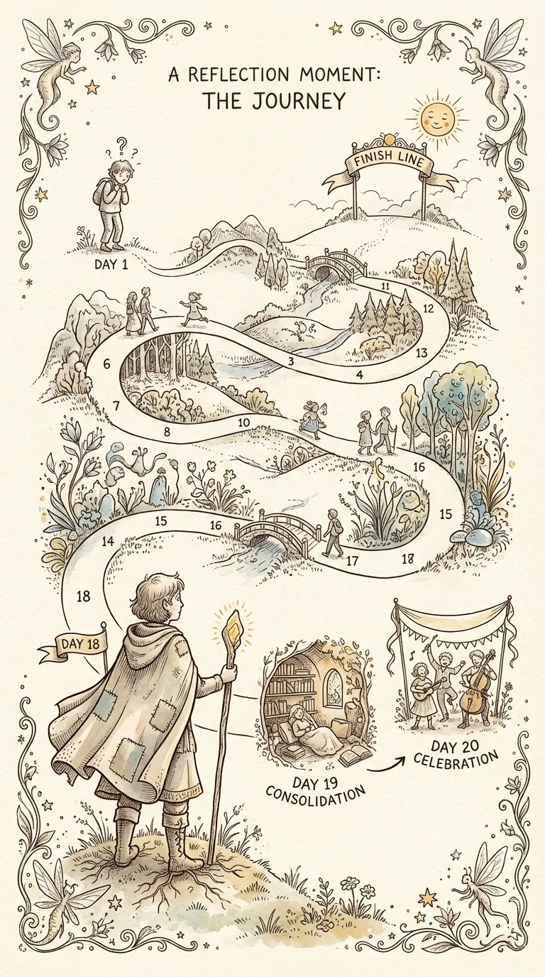 You're at Day 18 now. Two days left. You've moved through foundation, skills, and now deep mastery. The person you were on Day 1 is gone. The person you are now—someone who can be vulnerable, resilient, accountable, and authentic? That person is unshakeable. Not because nothing bothers them. But because they know how to handle it. They know how to connect. They know how to be real. These final two days are about consolidation and celebration. You've done the hard work. Now you integrate it into a sustainable practice that lasts forever.