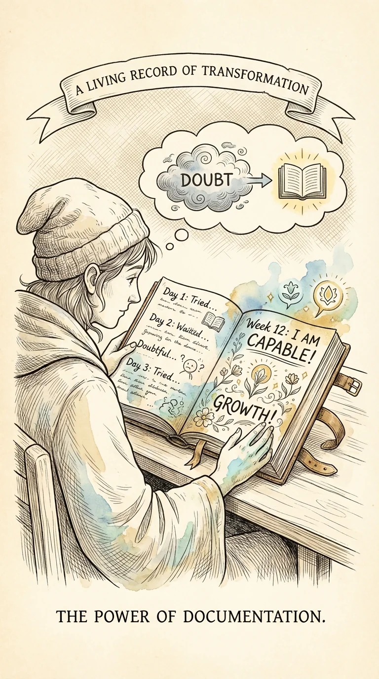 The confidence journal—powerful long-term tool. Keep simple log (digital or physical): Daily entry (2-3 minutes): Social situation or challenge, what went well, what you learned, tomorrow's intention. Weekly summary: Overall theme, biggest win, key learning, next week's focus. Why it works: Tracks actual progress (not just feeling), provides evidence for growth, helps identify patterns, maintains motivation. The difference: Without a journal, you rely on memory—which is faulty. With a journal, you have documented evidence of growth. This is the most powerful tool for staying grounded when confidence wavers.