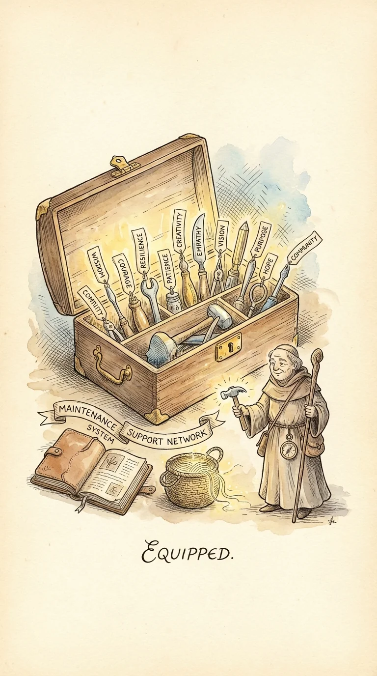 Your toolbox—what you now have: 1) 5-Second Rule. 2) Active Listening. 3) Cognitive Restructuring. 4) Self-Compassion. 5) Graduated Exposure. 6) Assertive Communication. 7) Graceful Recovery. 8) Rejection Reframing. 9) Authentic Vulnerability. 10) Contribution Mindset. Plus: Maintenance system. Journal. Community. You don't have 1 tool. You have 10+ concrete tools you didn't have 21 days ago. More importantly—you know how to USE them. You've practiced them. They work. This is the difference between knowing something and OWNING something.
